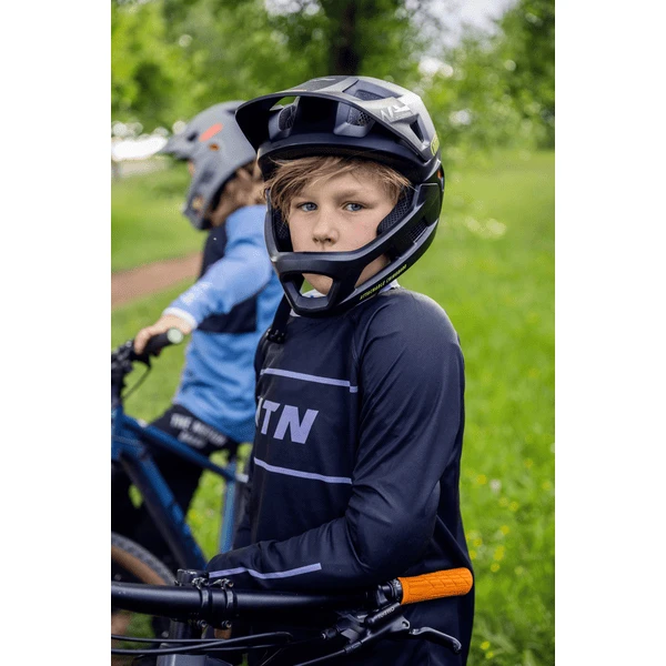 - El casco integral con mentonera desmontable mantiene seguros a niños y adolescentes en senderos accidentados o excursiones relajadas.